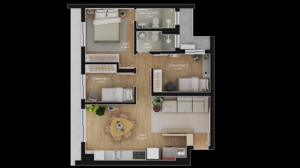 - Área Privativa: 73 m²