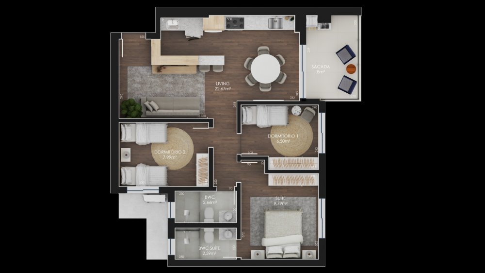 - Área Privativa: 78,45 m²