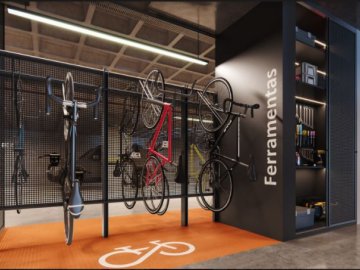 Piscina, coworking, bicicletas compartilhadas, academia, playground, espaço zen com cascata e lareira a gás, ferramentas compartilhadas.
