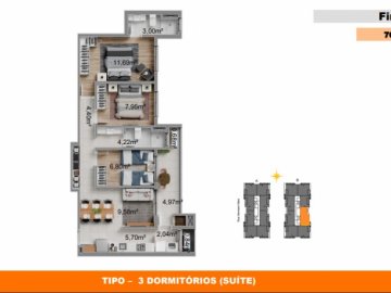 Apartamento pronto, 3 quartos, semimobiliado Anita Garibaldi