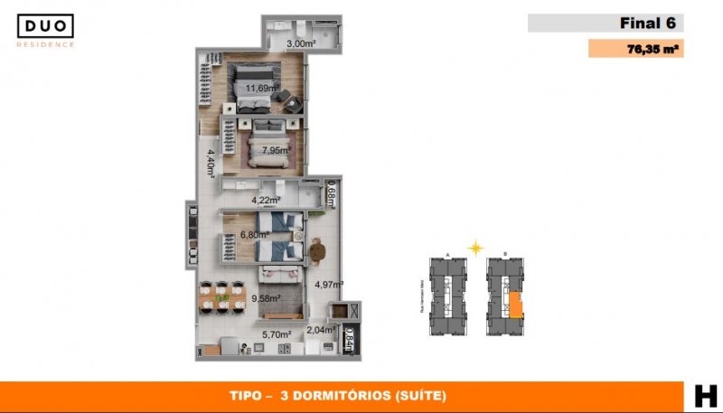 - Área Privativa: 76 m²