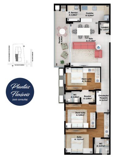 Espaços diferenciados, com a possibilidade de personalização do seu apartamento, para que ele fique do seu jeito.
